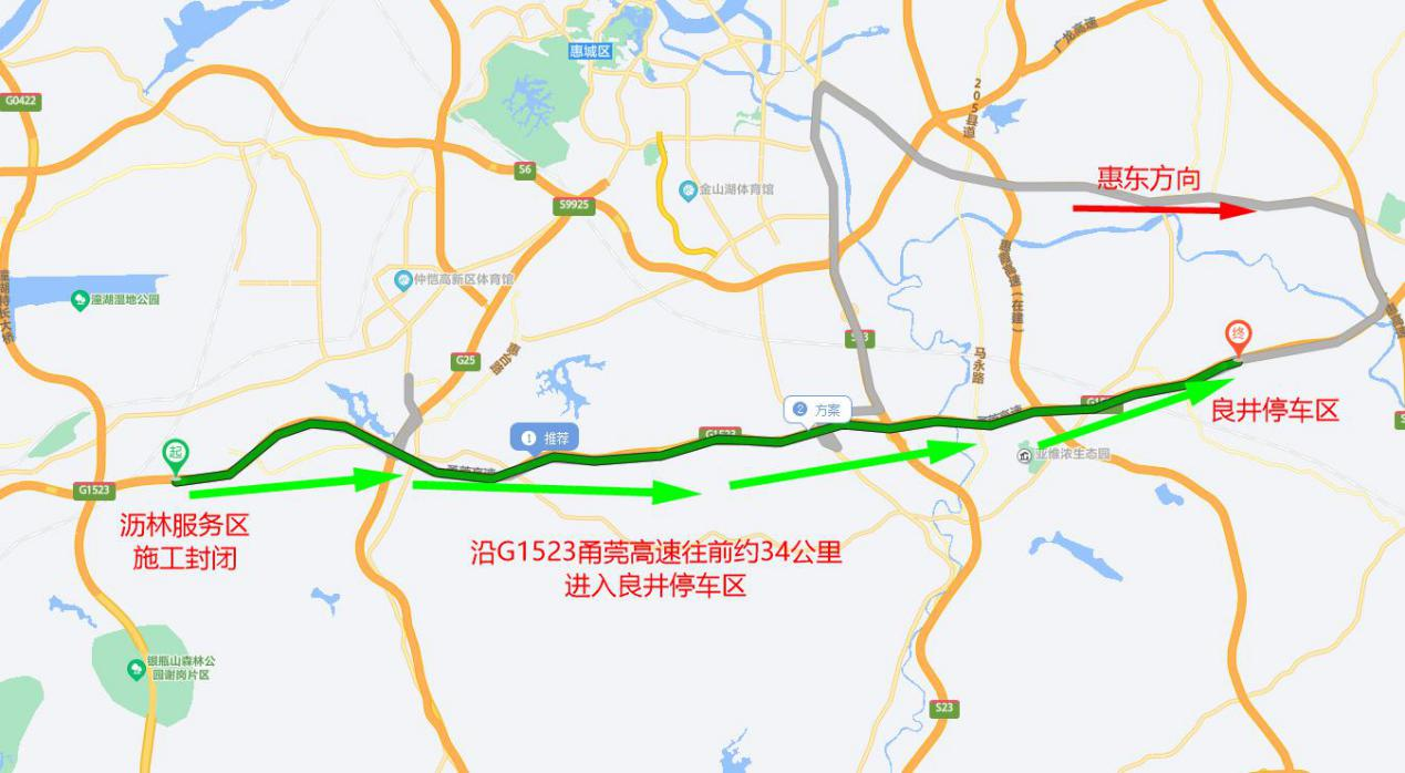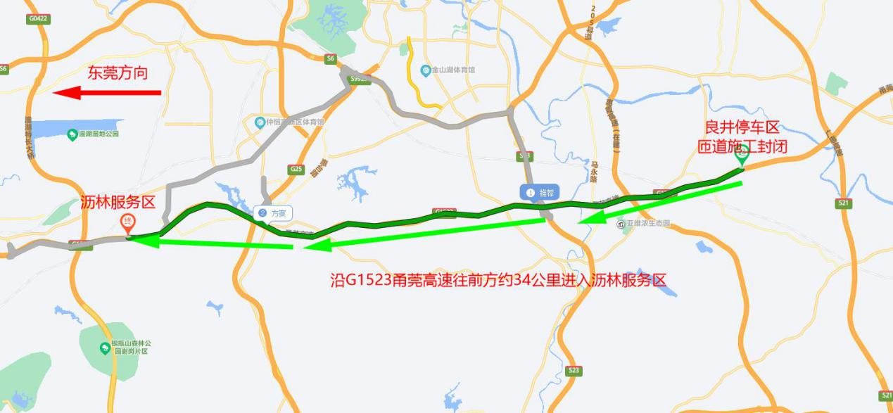 因甬莞高速沥林服务区、良井停车区施工需要,惠州公安交管部门近期将对沥林服务区、良井停车区实施临时交通管制。